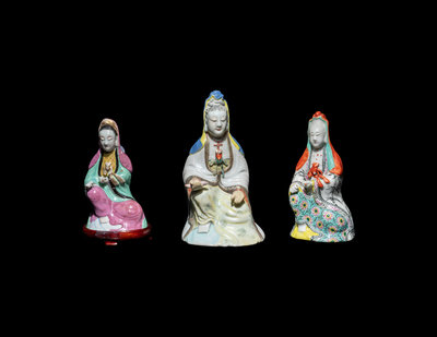 Three Chinese Famille Rose Porcelain Figures of Seated Guanyin