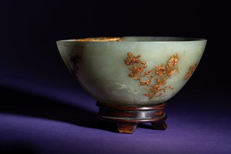 A Chinese Gilt Decorated Celadon Jade Bowl
