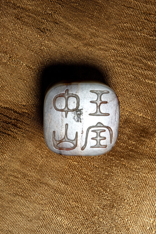 of rounded square form surmounted by a crouching dragon, the seal face reading Zhong Shan Wang Bao.