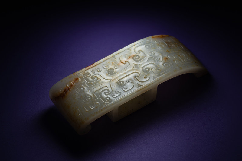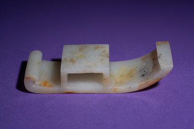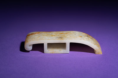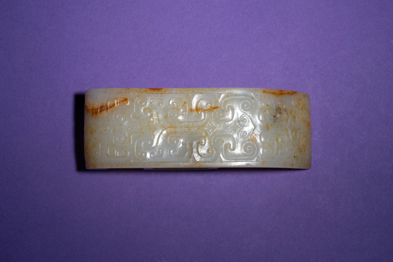 A Chinese White and Russet Jade Sword Slide, Jianzhi