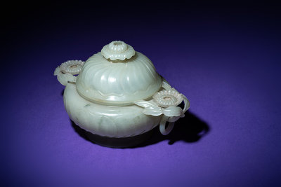 A Chinese Carved Jade 'Chrysanthemum' Incense Burner and Cover