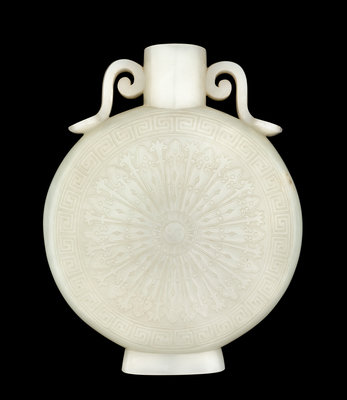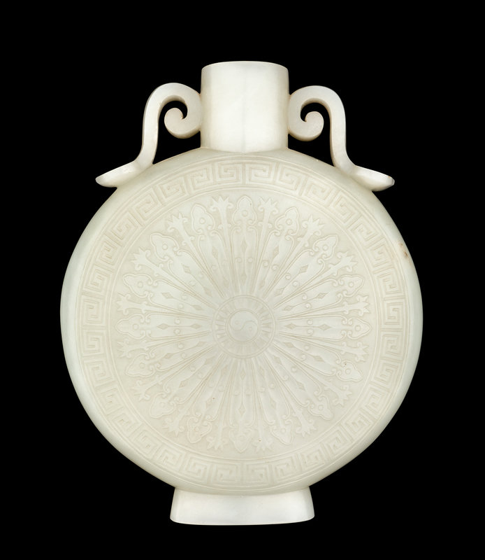 A Chinese Pale Celadon Jade Moon Flask
