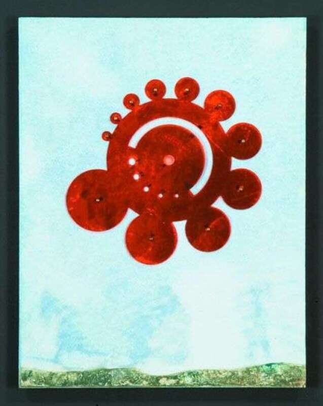 1970, signed and numbered 111/125 in pen on "edition MAT, Verlag/Galerie der Spiegel/Koln" label verso. Galerie Der Spiegel, publisher. Color silkscreen with collage mounted on wood panel.