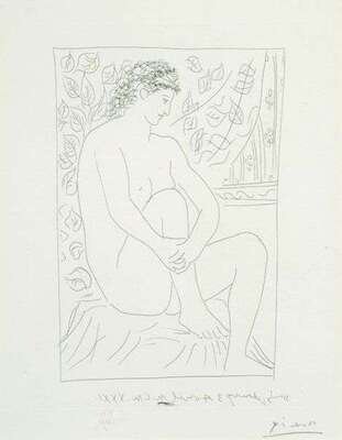FEMME NUE ASSISE DEVANT UN RIDEAU from Suite Vollard