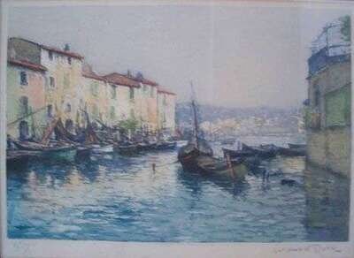 Ca. 1928, pencil signed and numbered 96/250 in the margin. Color aquatint.