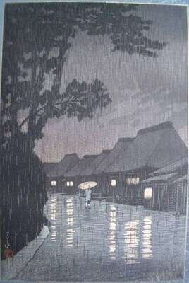 Signed Hasui and with Sui seal; with 6mm seal; Watanabe Shozaburo, publisher. Color woodcut.