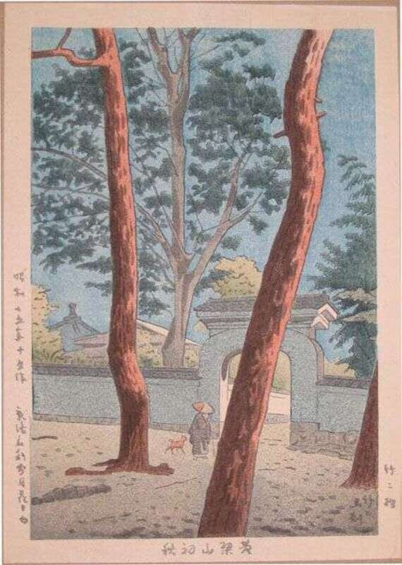 1944, signed Takeji ga koku in the margin; with Takeji suri signature in the lower right margin. Color woodcut.