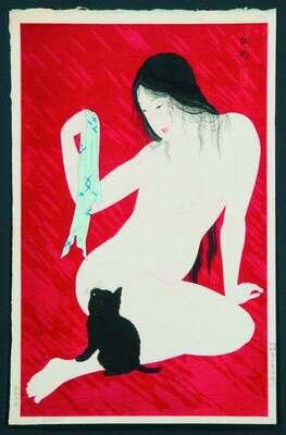 Ca. 1930, signed Hiroaki; with Hiroaki seal; and with Fusui Gabo publisher seal in the margin. Color woodcut.