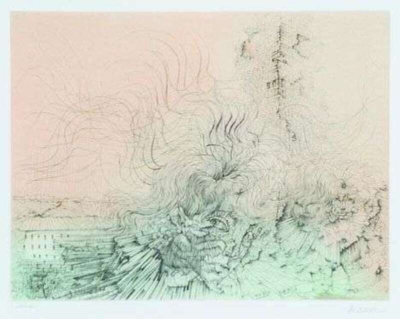 Pencil signed and inscribed 'essai' in the margin. Color etching.