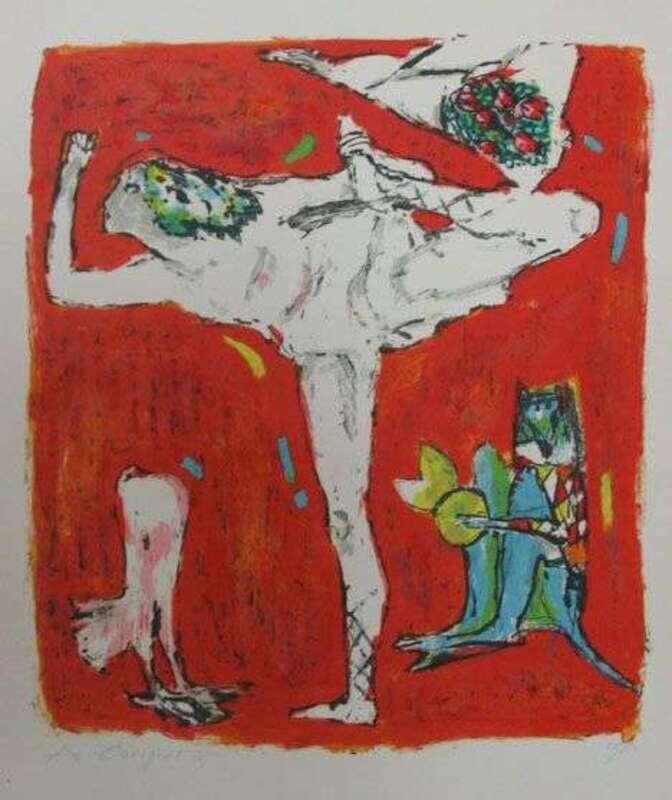 Pencil signed, numbered 67/150 and dated 58 (?) in the margin. Color lithograph on BFK Rives paper.