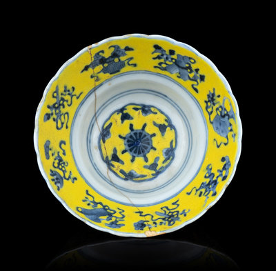 A Chinese Yellow Ground Blue and White Porcelain Ogee Cup