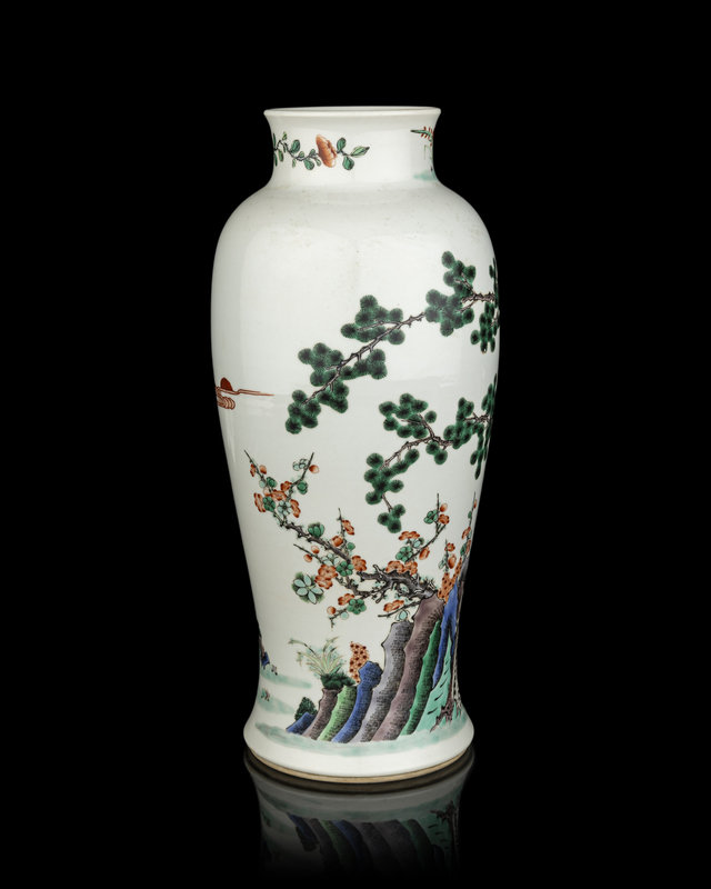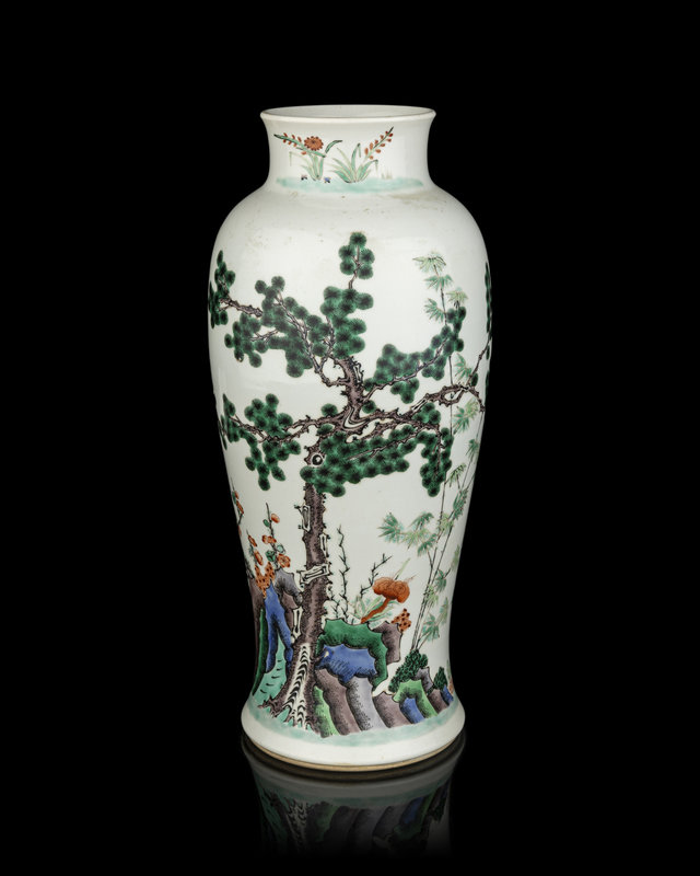 A Chinese Famille Verte Porcelain 'Three Friends' Vase