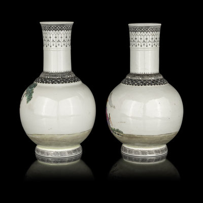 A Pair of Chinese Famille Rose Porcelain Bottle Vases