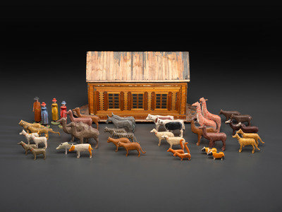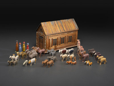 with 4 polychrome human figures and 74 polychrome animal figures, some unpaired.