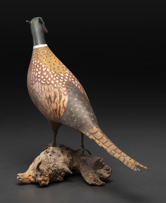 A Carved and Painted Wood Pheasant Decoy