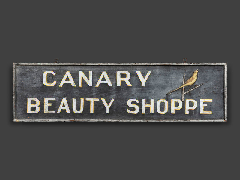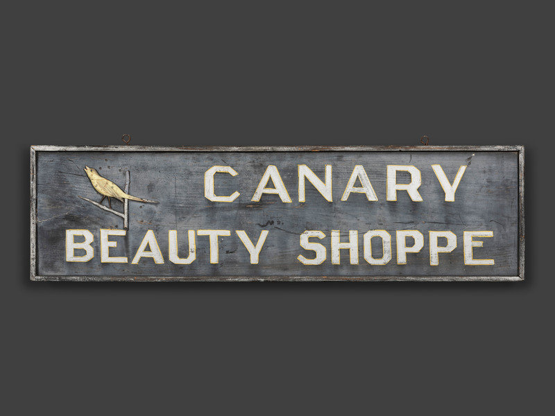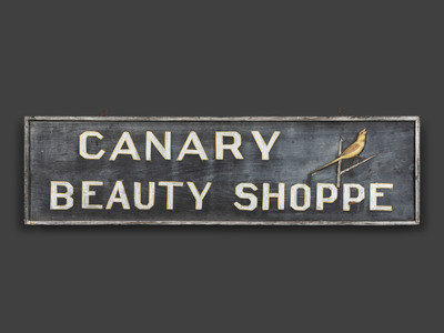 A Canary Beauty Shoppe Painted Wood Double-Sided Sign