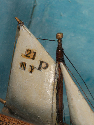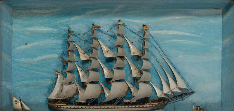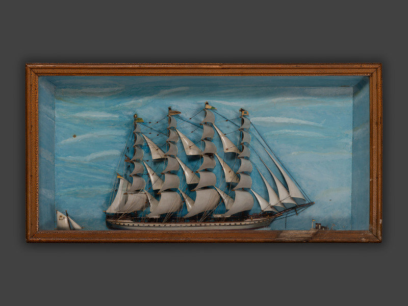 A Carved and Painted Wood Ship Diorama
