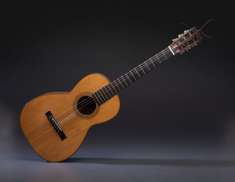 the back of the headstock impressed C.F. Martin / New York and the inside of the body stamped C. F. Martin & Co / New York, together with a later Martin and Co. hard case, replaced bridge and repaired cracks to the body.
