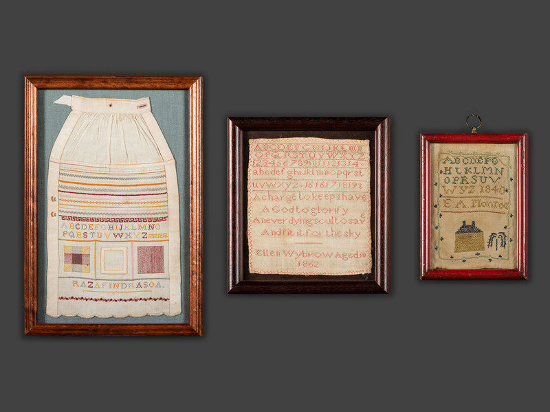 Three Needlework Alphabet Samplers, Including a Rare Apron
