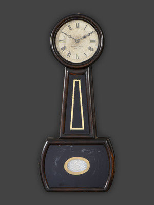 An American Églomisé Panel Inset Grain Painted Banjo Clock