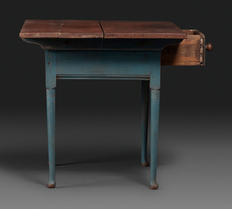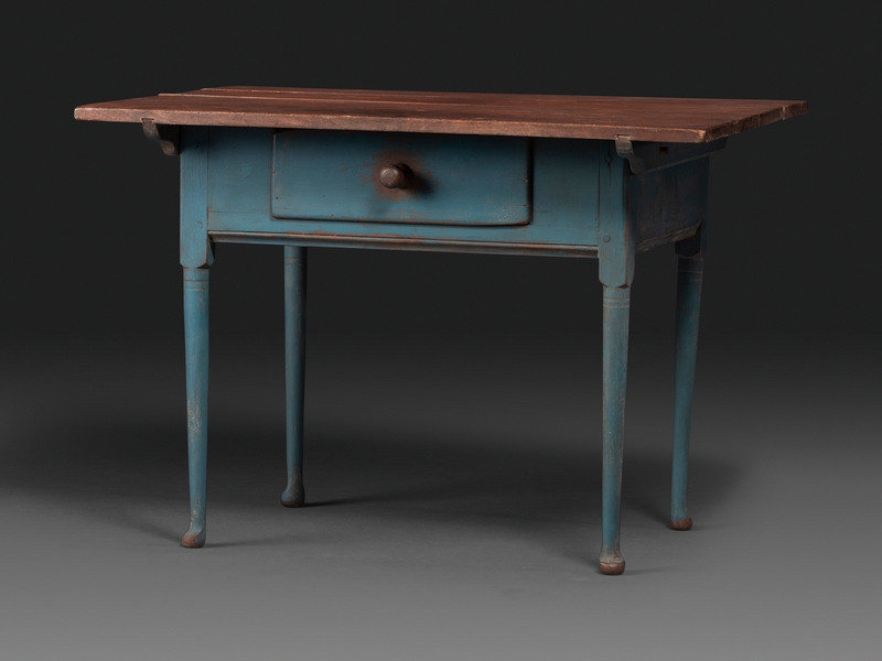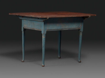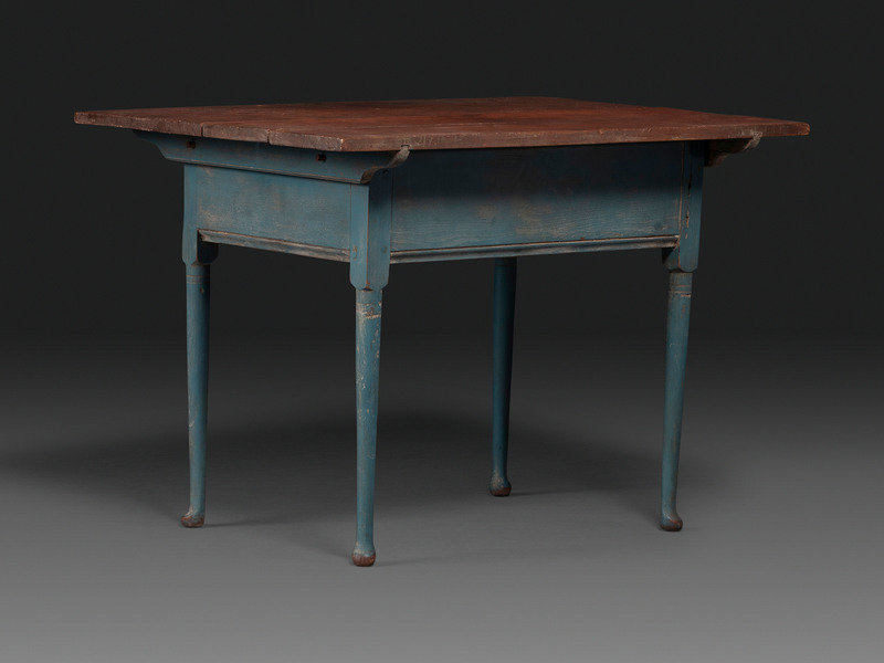 A Country Queen Anne Blue Painted and Red-Stained Walnut Tavern Table