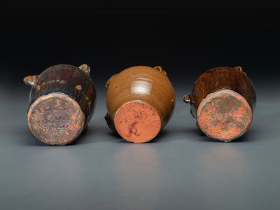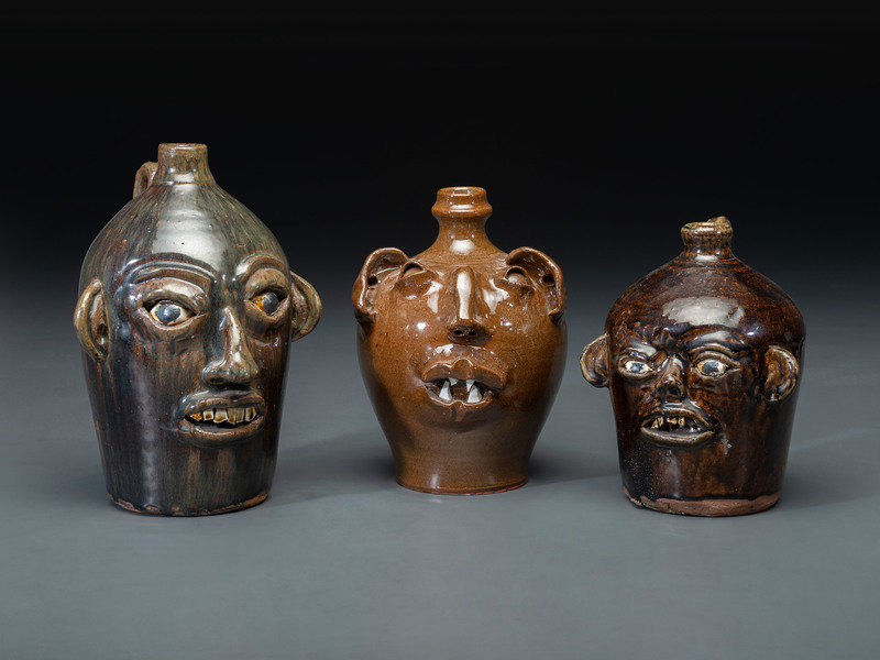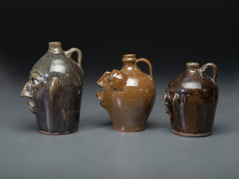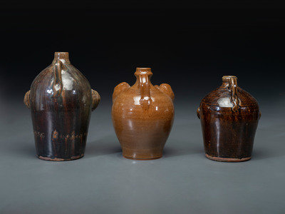 comprising examples by M.L. Owens, Seagrove, North Carolina, dated 1990, Matthew Hewell, Gillsville, Georgia, and a James Buchanan jug by Grace Nell Hewell.