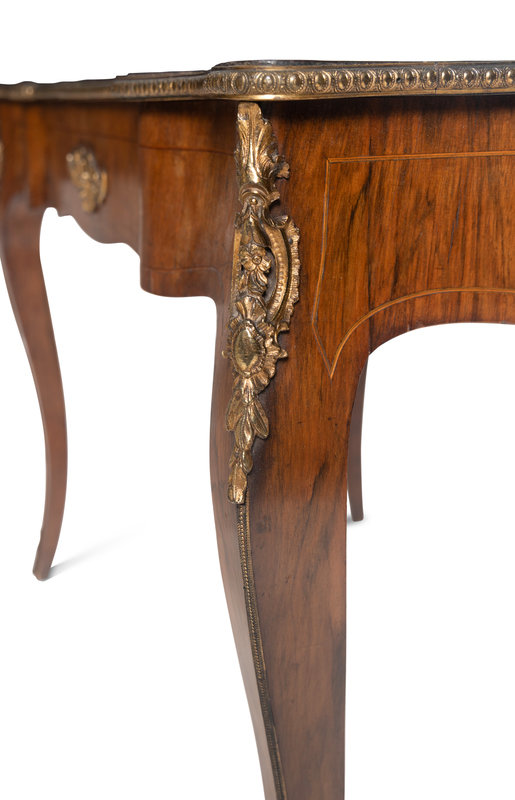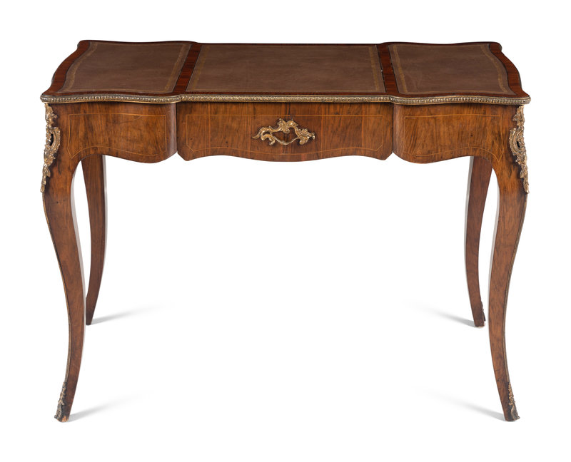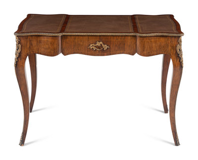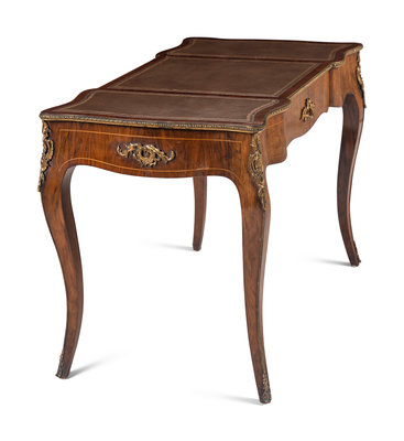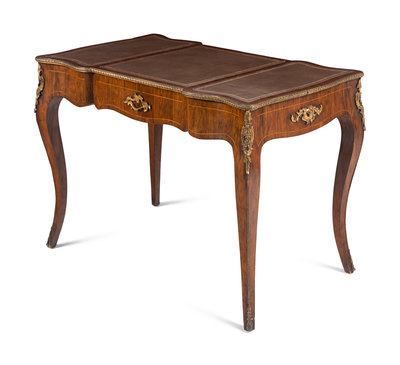 A Louis XV Style Gilt Metal Mounted Rosewood Bureau Plat