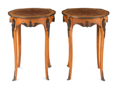 A Pair of Louis XV Style Parquetry Side Tables