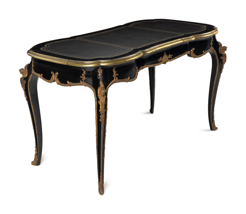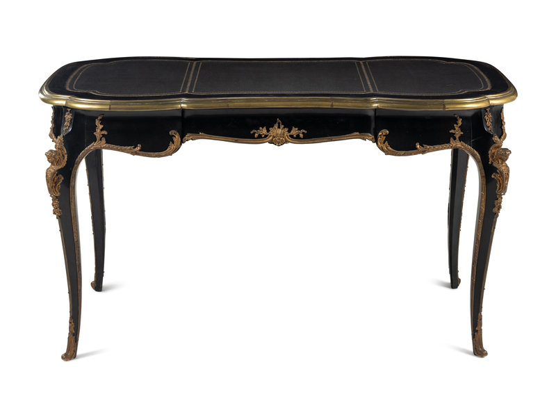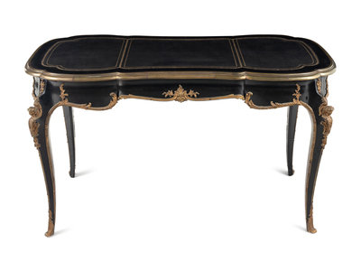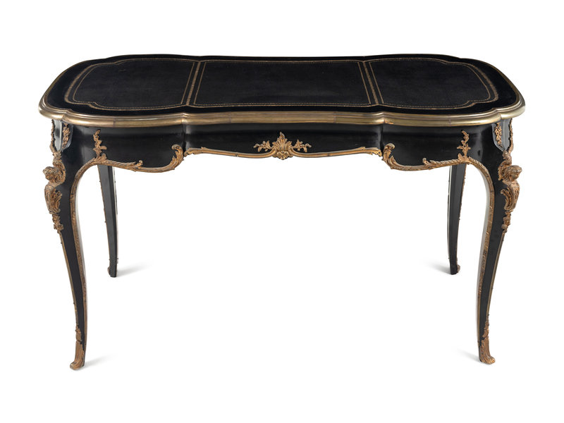 A Louis XV Style Gilt-Metal Mounted Ebonized Bureau Plat