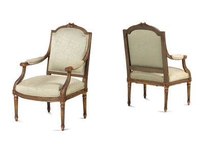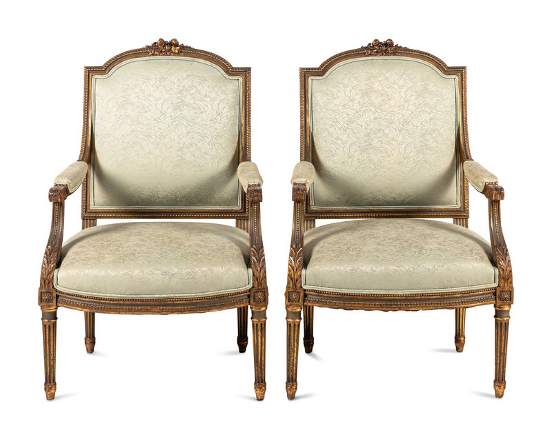A Pair of Louis XVI Style Giltwood Fauteuils