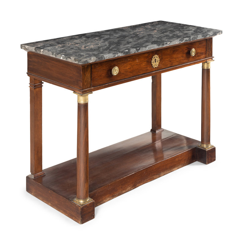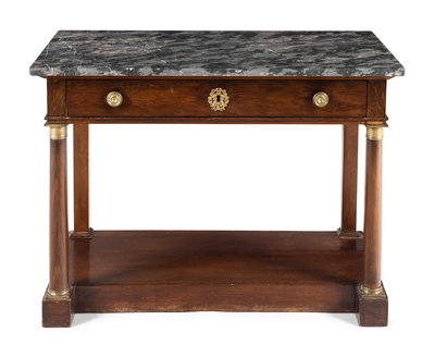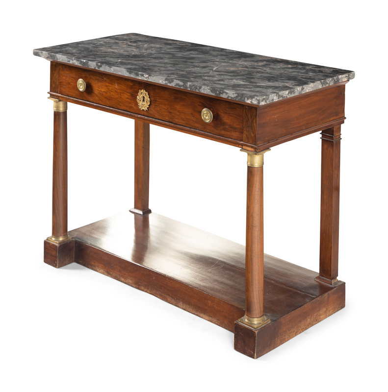 An Empire Style Gilt Bronze Mounted Mahogany Marble-Top Pier Table