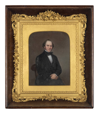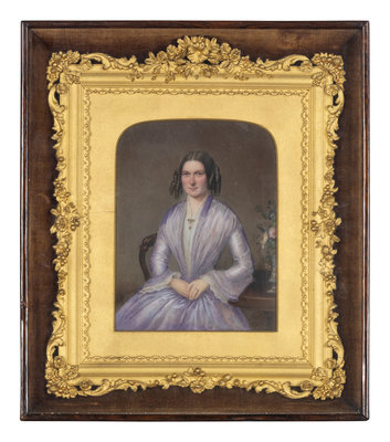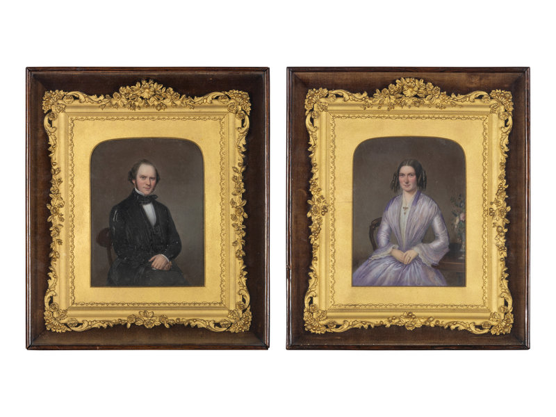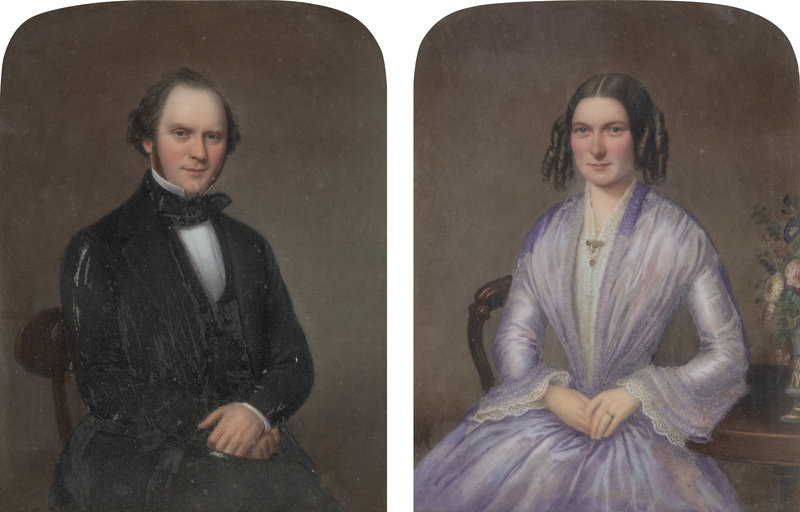 Two English Painted Porcelain Portrait Plaques of a Gentleman and Lady