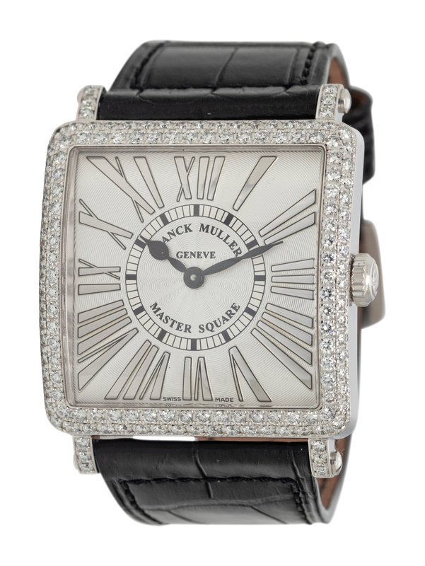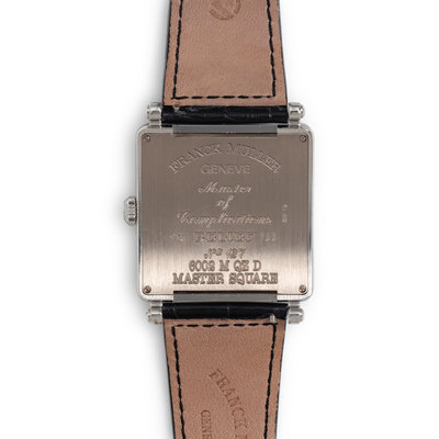 Stamps: Case back: FRANCK MULLER GENEVE MASTER OF COMPLICATIONS RELIEF No 127 6002 M QZ D MASTER SQUARE 750.