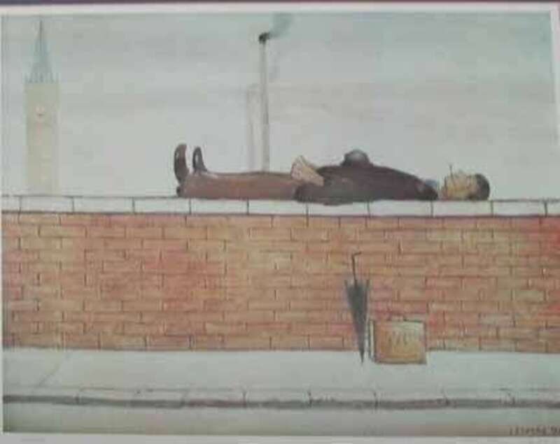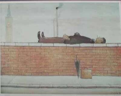 (AFTER) LAURENCE STEPHEN LOWRY (BRITISH 1887-1976) MAN LYING ON A WALL.