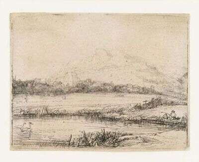 REMBRANDT HARMENSZ VAN RIJN (DUTCH 1606-1669) CANAL WITH AN ANGLER AND TWO SWANS