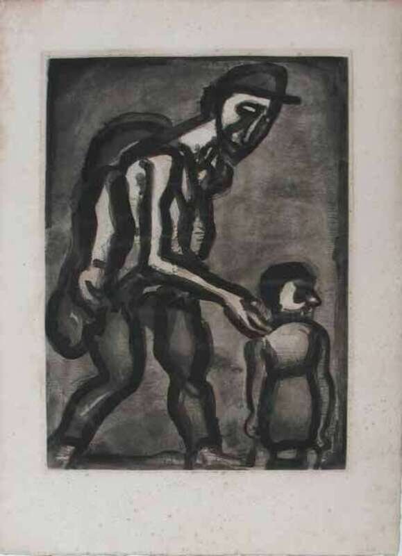 GEORGES ROUAULT (FRENCH 1871-1958) SE RÉFUGIE EN TON COEUR, VA-NU-PIEDS DE MALHEUR PLATE 4 FROM MISERERE