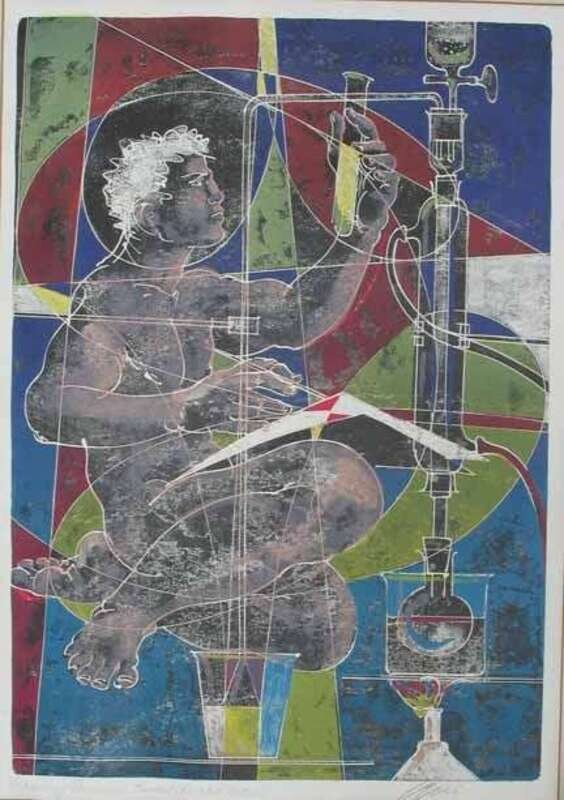 HANS ERNI (SWISS B. 1909)TWO COLOR SCREENPRINTS PHARMACY PROGRESSES TOWARD THE 21ST CENTURY