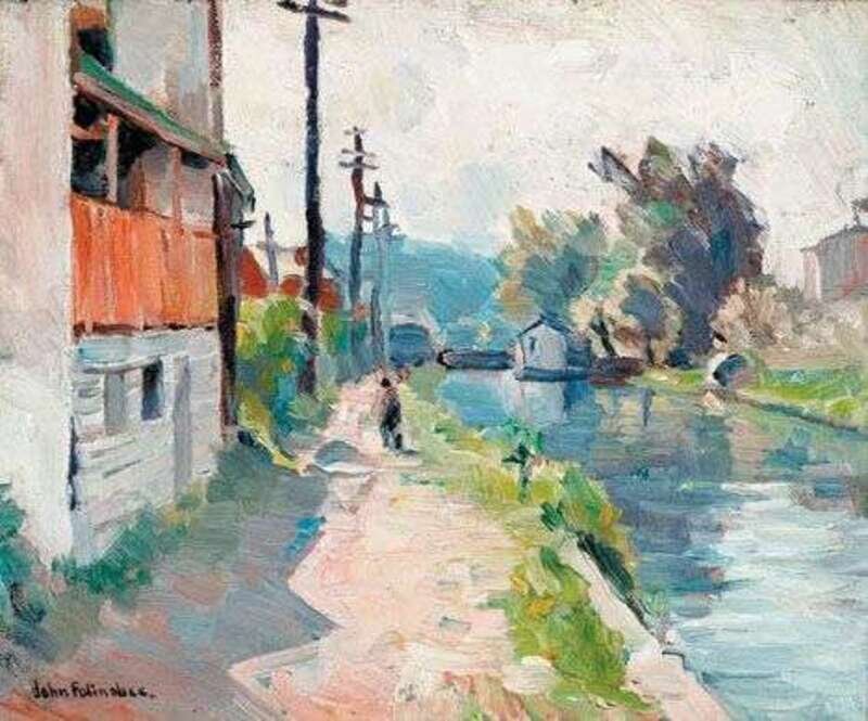 JOHN FOLINSBEE (AMERICAN 1892-1972) "ON THE PORCH" (BY THE CANAL, NEW HOPE)