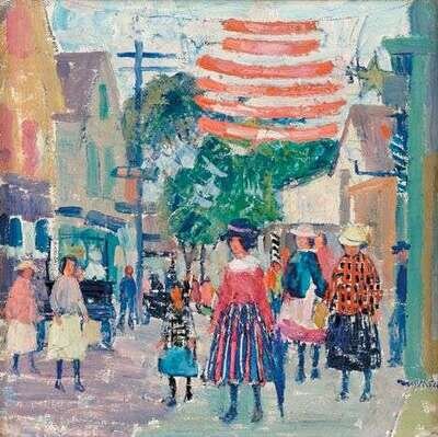 NANCY MAYBIN FERGUSON (AMERICAN 1869-1967) "GIRL WITH STRIPED SKIRT"