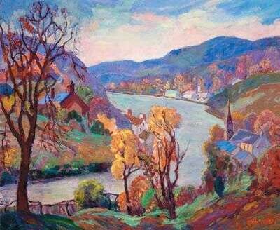 FERN ISABEL COPPEDGE (AMERICAN 1888-1951) "NEW HOPE LANDSCAPE WITH DELAWARE RIVER"