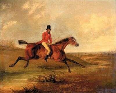 Numbered and inscribed "No 5 Going For Cover" verso also inscribed "Portrait of John Hamilton Parr at Liverpool Painted by Laporte AD 1832" on label verso, oil on canvas