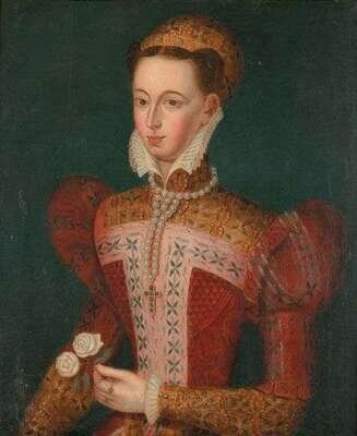 BRITISH SCHOOL (16TH/17TH CENTURY) PORTRAIT OF A LADY, HALF LENGTH, HOLDING TWO WHITE ROSES