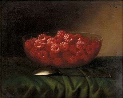 CARDUCIUS PLANTAGENET REAM (AMERICAN 1837-1917) RASPBERRIES IN A GLASS BOWL