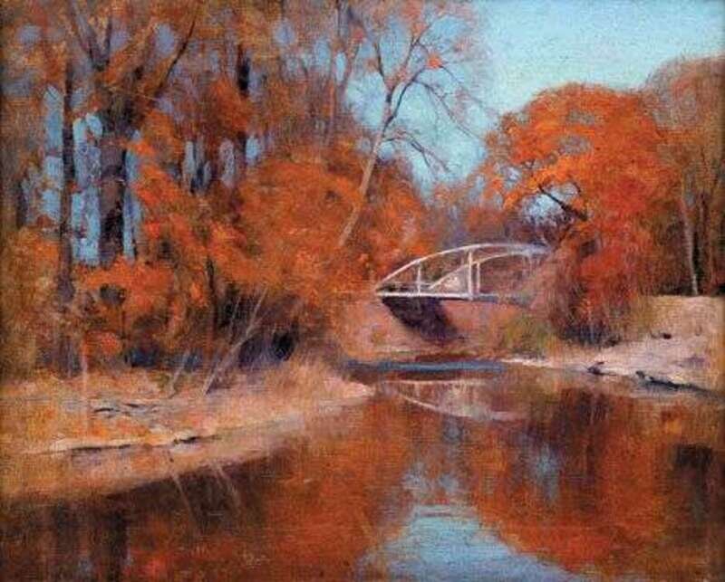 ALLEN DEAN COCHRAN (AMERICAN 1888-1971) BRIDGE OVER A RIVER, AUTUMN