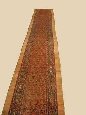 Malayer Runner, West Persia, circa late 19th century, 23 ft. 2 in. x 3 ft. 5 in.; and Kazak Prayer rug, Southwest Caucasus, dated 131*, circa late 19th century, 5 ft. 3 in. x 3 ft. 2 in.