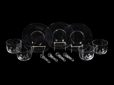 comprising 11 dessert plates, 11 finger bowls and 12 knife rests; 34 items total.