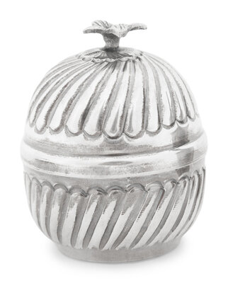together with a small ovoid silver box marked 'KAP .900.'