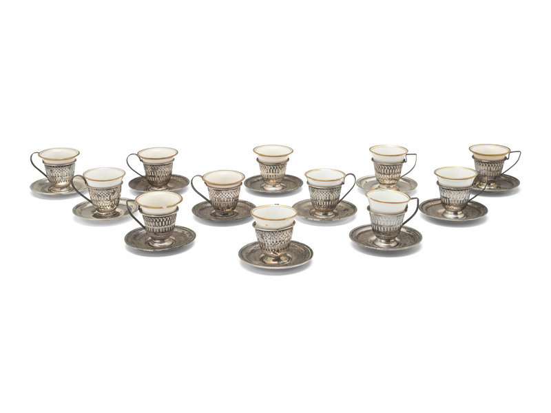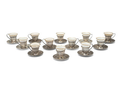 A Set of Twelve American Silver Coffee Cups and Saucers