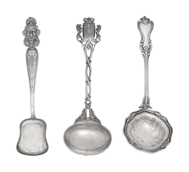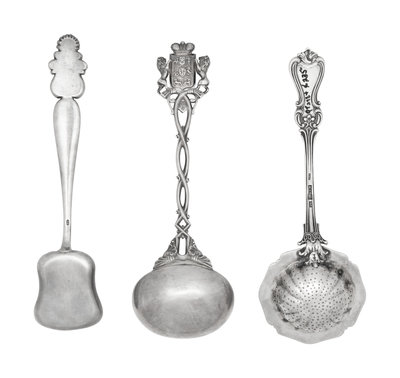 comprising a sugar scoop, sugar sifter and sauce ladle.