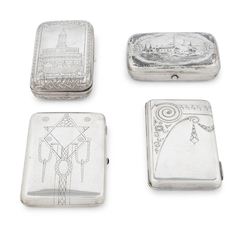 A Collection of Four Russian Silver Cigarette Cases